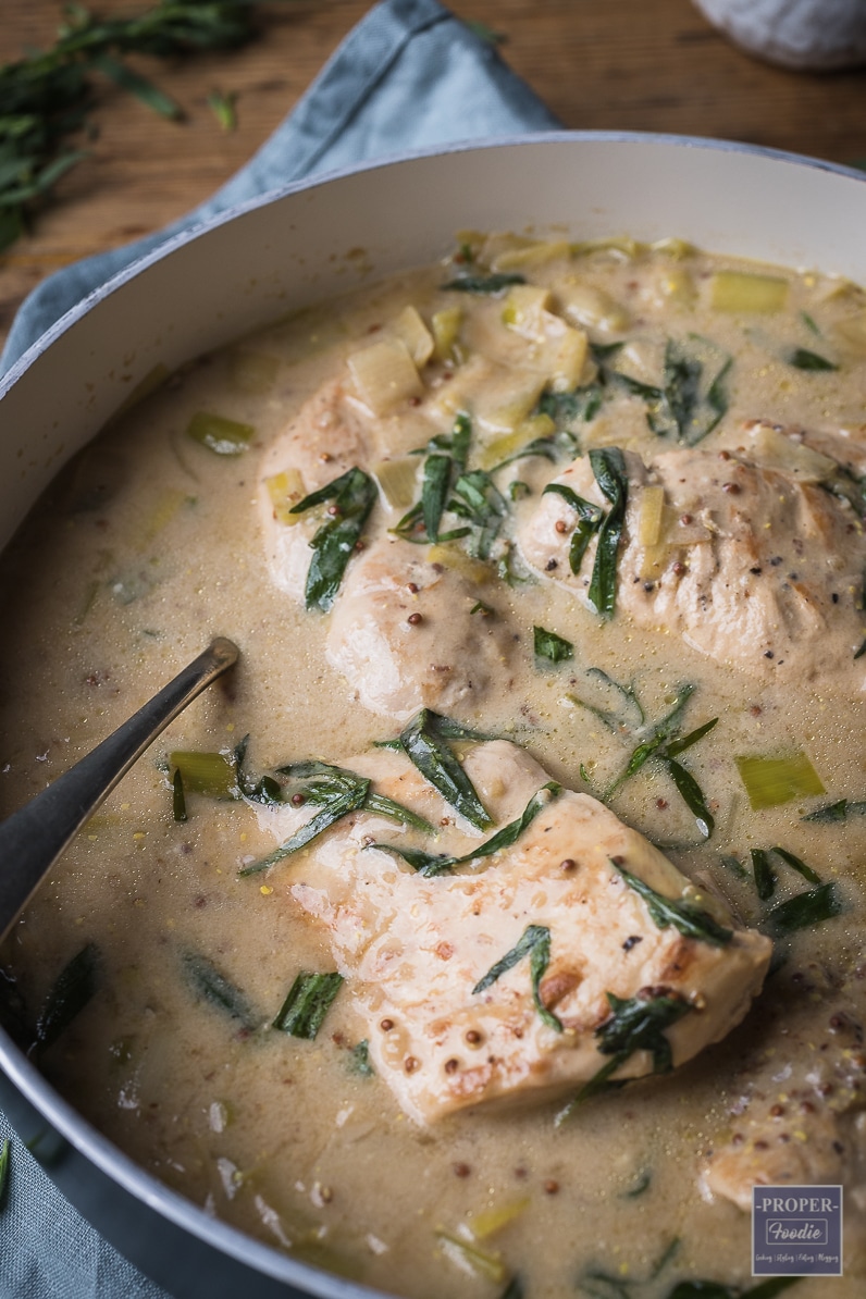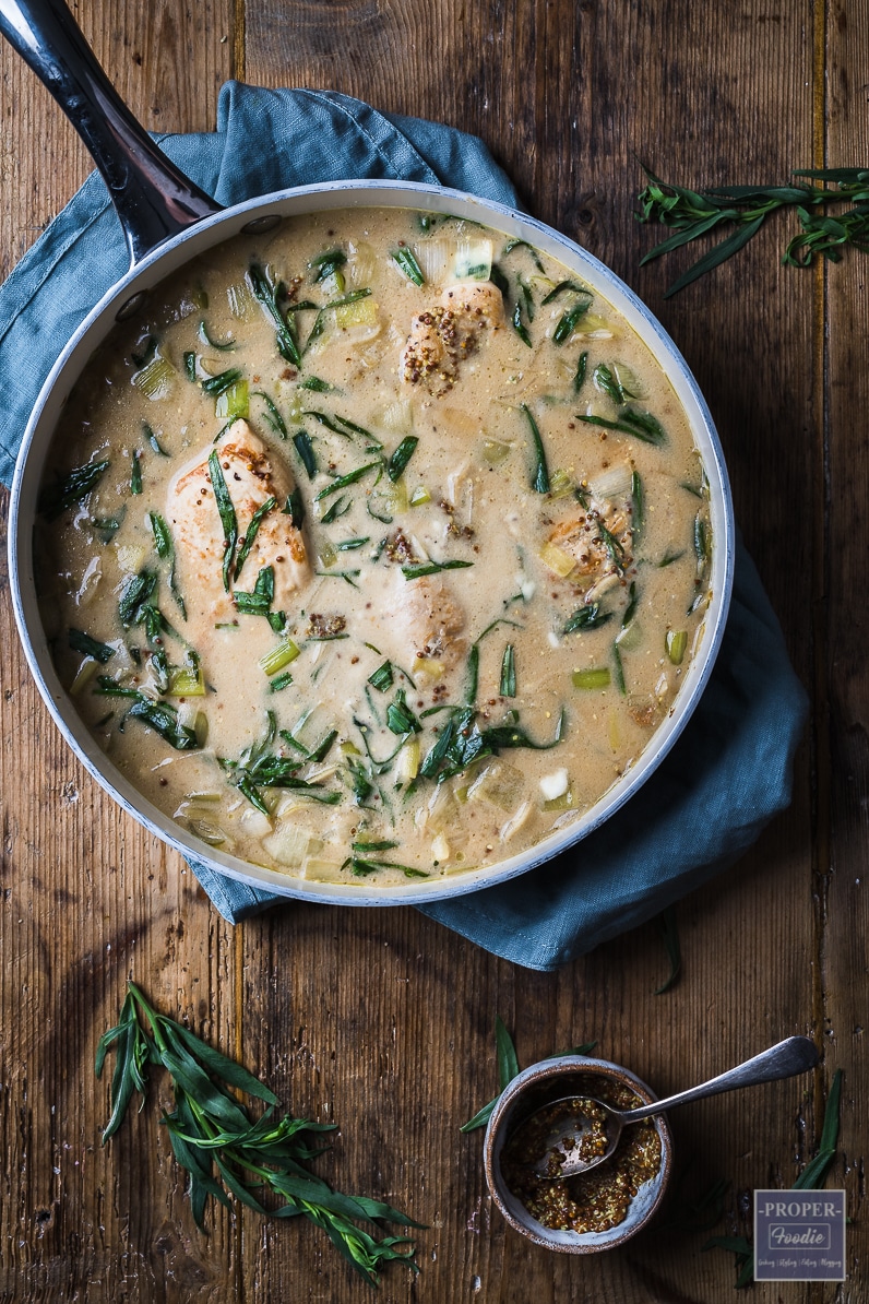 A simple chicken and leeks recipe made with creamy mustard and tarragon sauce. Perfect for a Saturday night in or as an easy Sunday dinner idea! This tasty leek dish is also great as a base for chicken leek pie or leek and chicken pasta recipes!