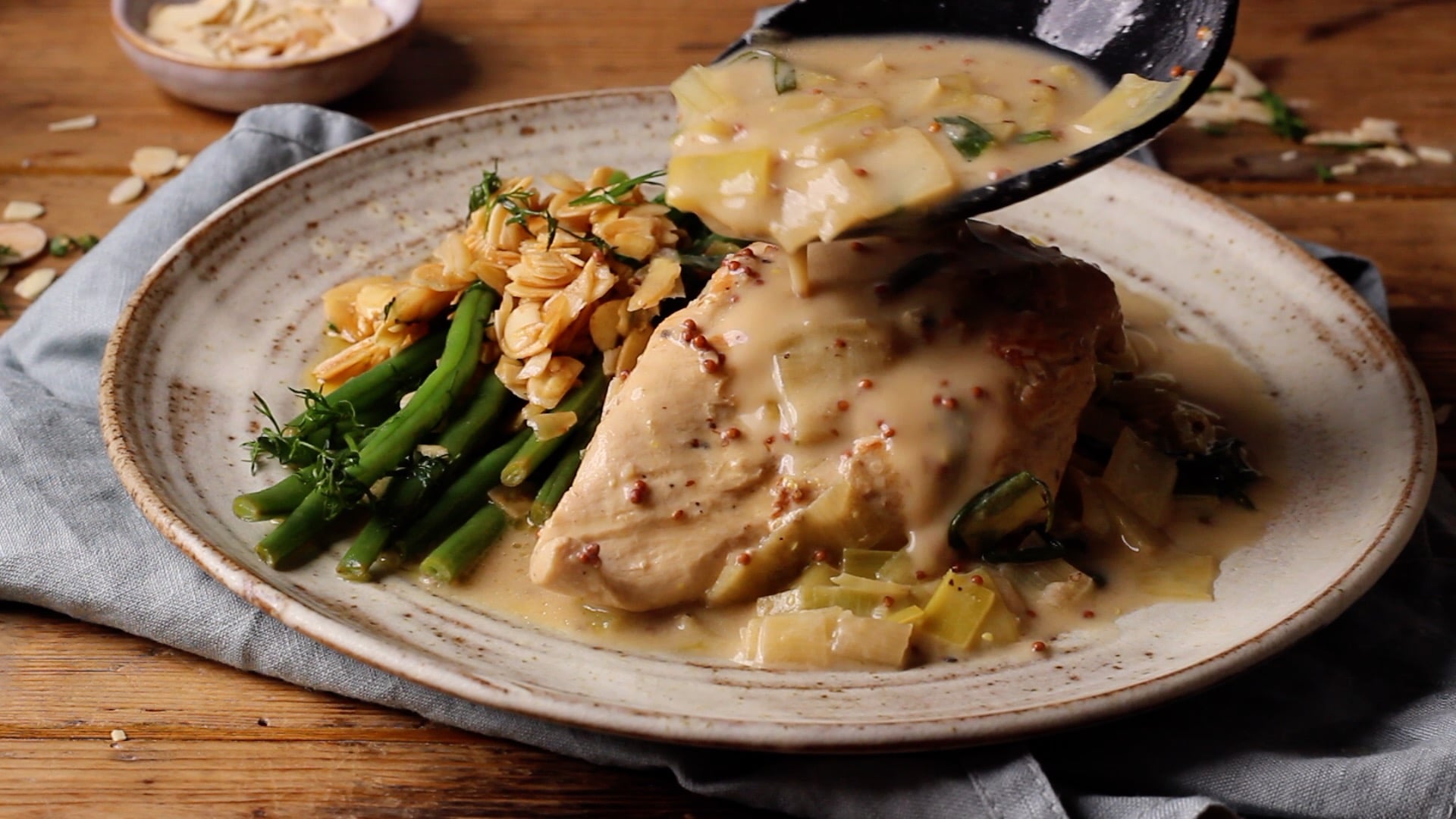 The basis of this classic recipe is a creamy chicken and leek broth infused with sweet tarragon and spicy mustard seeds. I could eat it all day just as it is, but the joy of this recipe is that it can also be used as the starting point for many other chicken and leek recipes. Recipes with chicken are so versatile but there is something special about this delicious sauce and tarragon chicken.