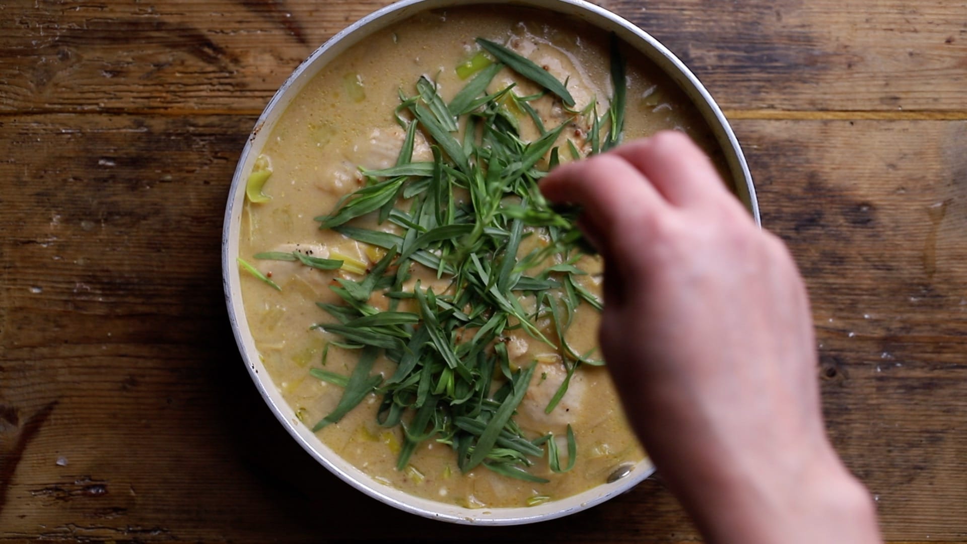 - Finish by stirring in some fresh tarragon leaves before serving with your choice of veg or potatoes.